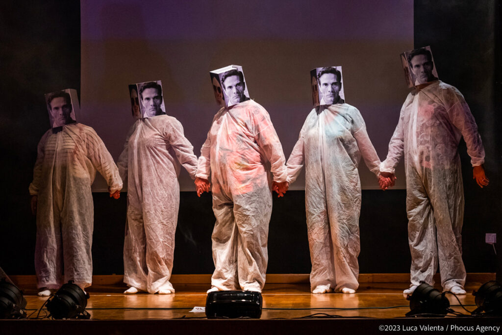 La comprensione del testo è completamente affidata ai corpi e ai movimenti degli attori, che si inventano mimi, clown, buffoni mascherati, ballerini…